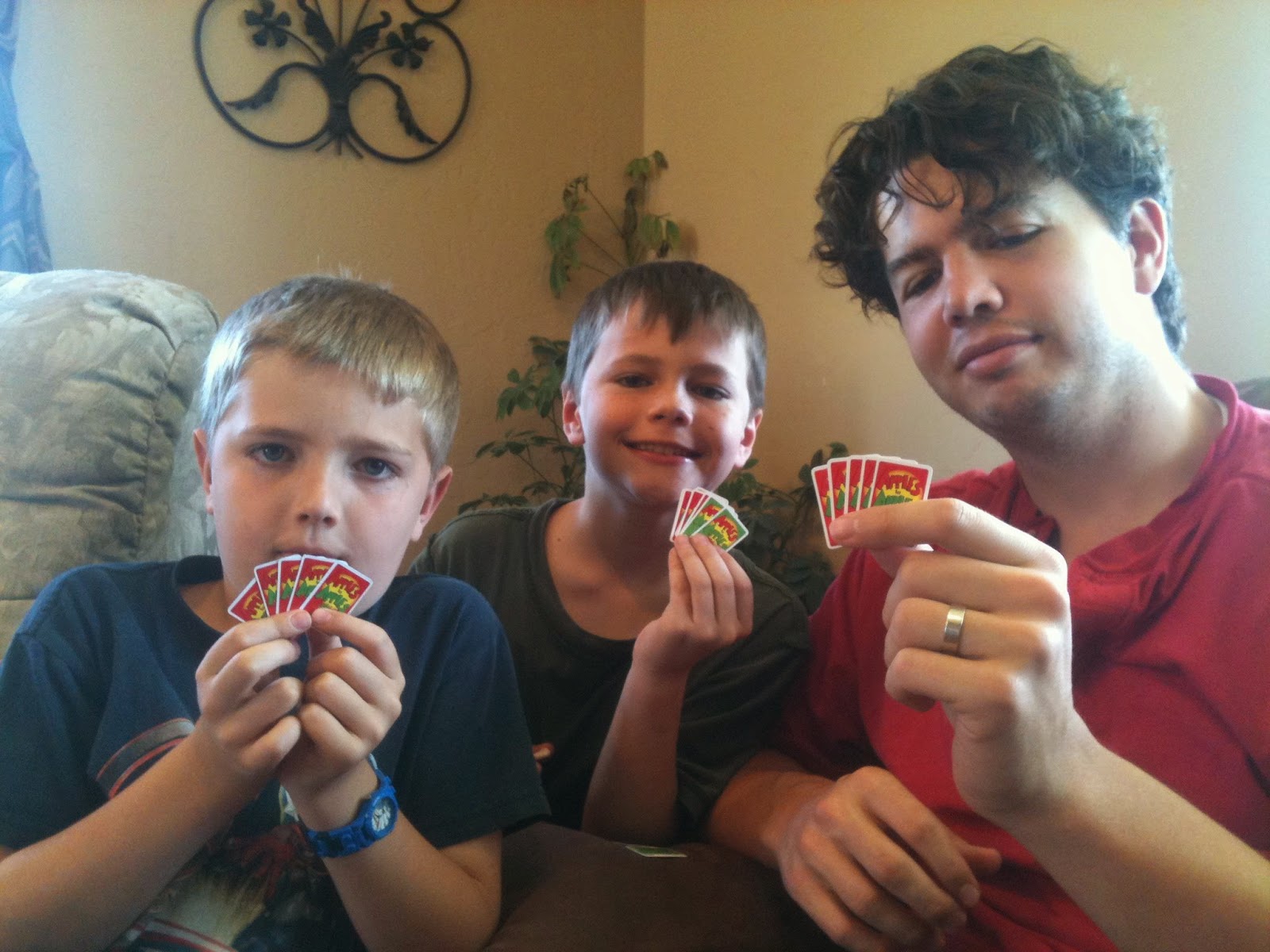 t-shirt on. :) Josh and our friend Cameron (first guy) nearly tied, but I think Cameron barely got it on first.